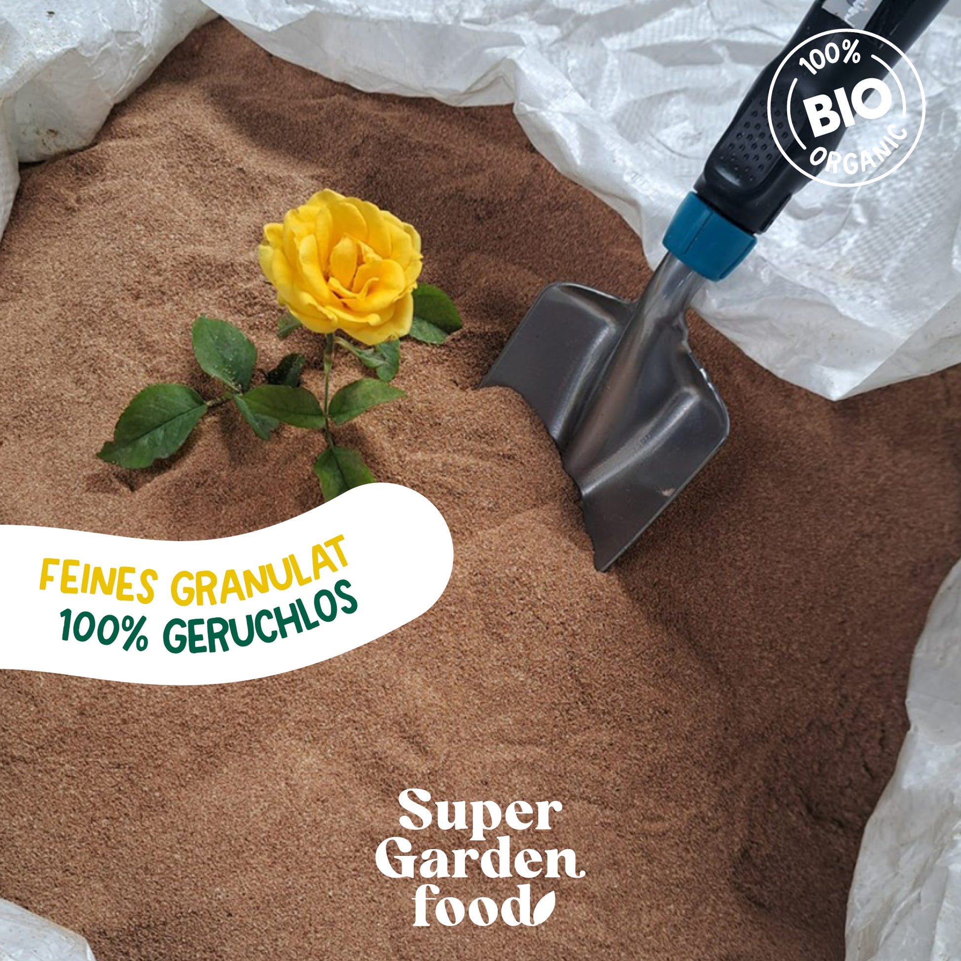 Hochwertige Chitinreste fördern eine langfristige Aktivierung des Bodenlebens. Die hohe Bioverfügbarkeit bewirkt eine sehr gute Aufnahme der Nährstoffe. Das Ergebnis sind sichtbar vitalere und gesündere Pflanzen. Bob ist der beste Bio Bloom Dünger.